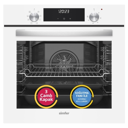 Simfer 8209 9 Fonksiyon QS Beyaz Cam Ankastre Fırın Power Turbo Dijital