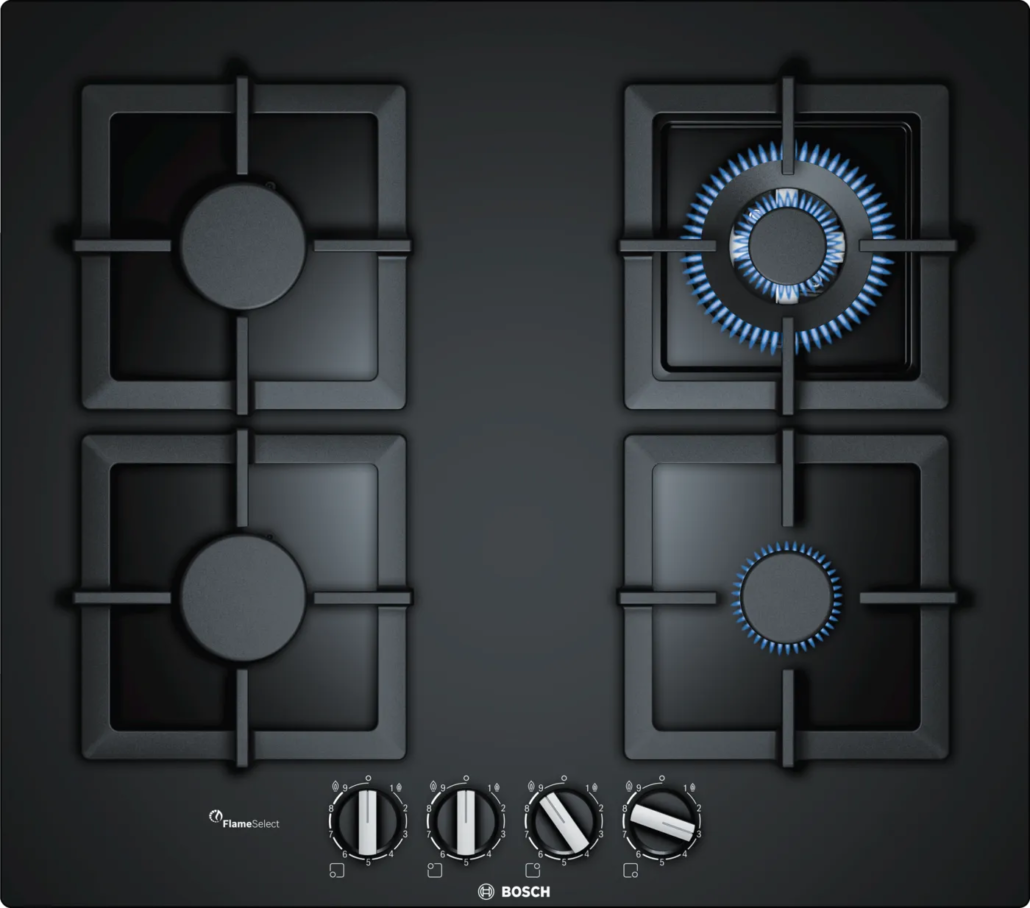 Sol arka: normal ocak gözü 1.75 kW’a kadar (gaz türüne bağlı) Sağ arka: Wok ocak gözü 3.5 kW’a kadar (gaz türüne bağlı)
